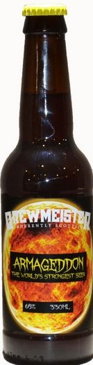 Armageddon - 65% World's strongest beer which is made by freezing the beer and removing the water. It is then aged for 2-3 months. Notes of caramel and oak.